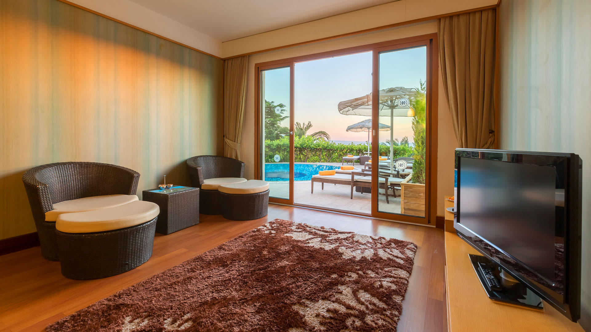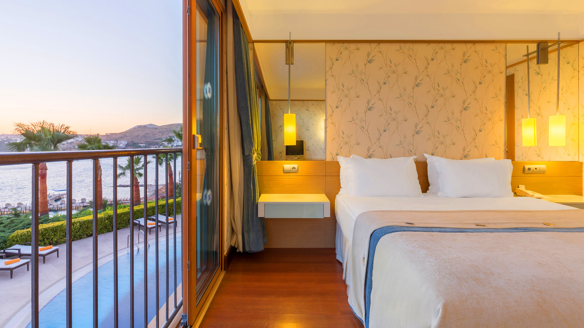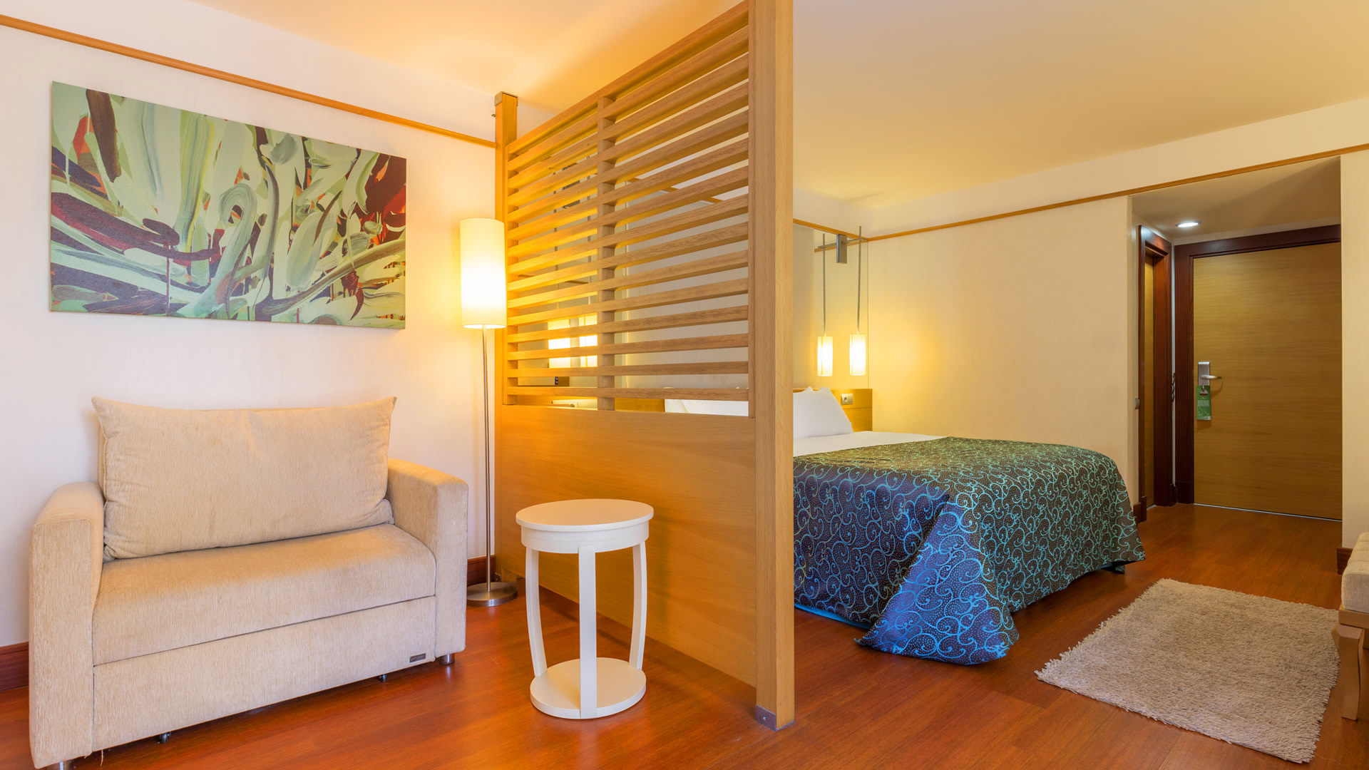 Yatak Tipi: 1 çift kişilik yatak ve 2 adet tek kişilik yatak. Superior Suite özel hizmetleriyle sizinle; dublex oda, superior suit misafirlerinin kullanabileceği özel müşterek havuz, hizmetli odası, turn down servisi.